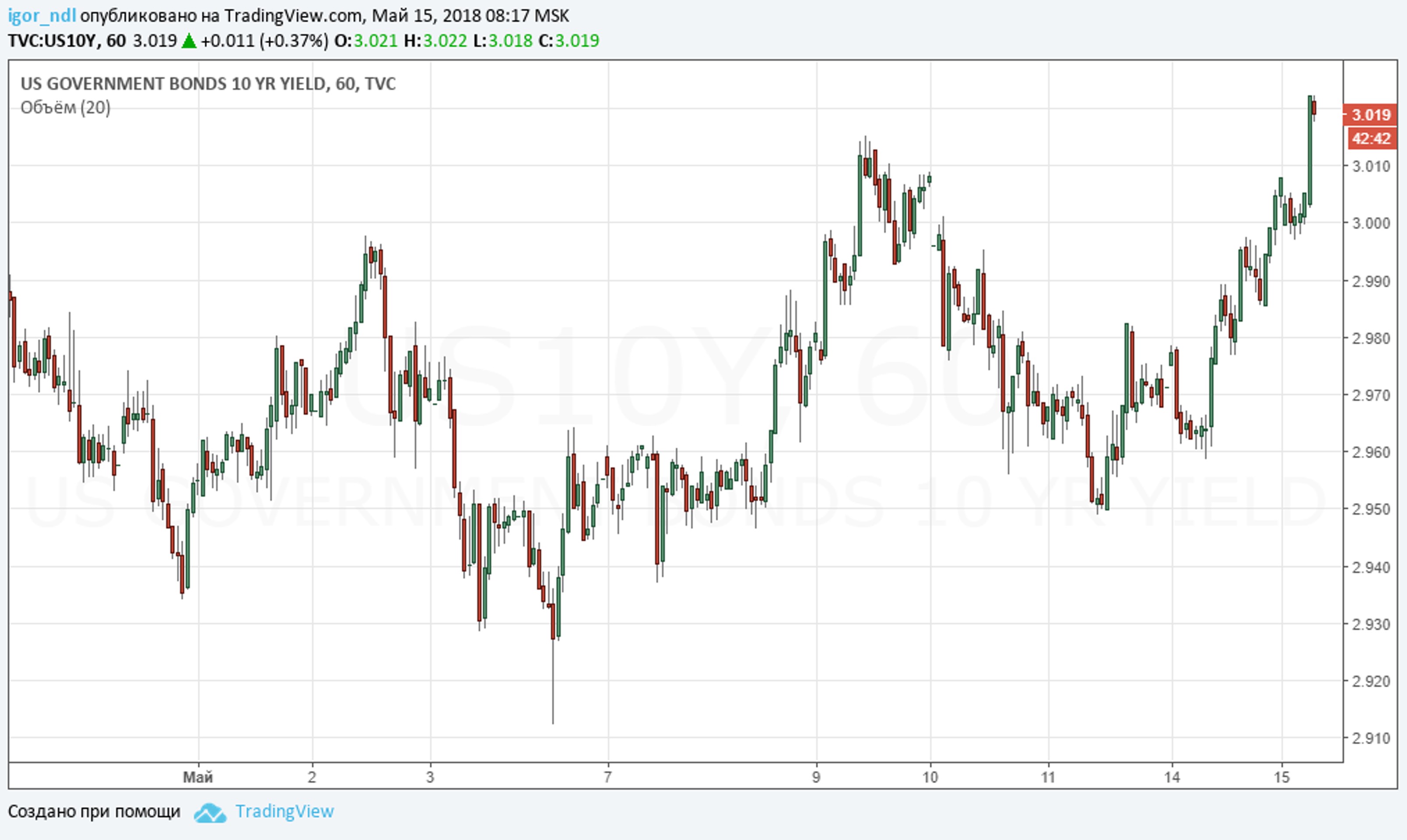 Вместе с тем, стоит отметить, что главным фактором аппетита к риску по-прежнему выступает ситуация на долговом рынке США. В последние несколько дней наблюдалось снижение напряженности, доходности по казначейским облигациям снижались и ушли ниже психологической отметки 3%, однако сейчас снова пытаются преодолеть этот важный уровень.