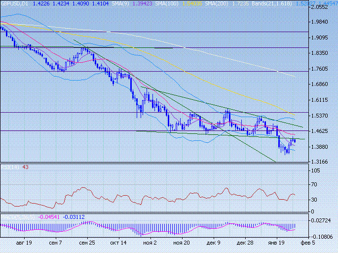 Стерлинг не сумел развить успех и преодолеть понижательное сопротивление на 1,4265 (пересмотрено с 1,4205). Вероятен разворот и снижение стерлинга от текущих отметок к минимумам в районе 1,3600-1,3550. Прорыв понижательного сопротивления наверх усилит позиции стерлинга и приведет к росту первоначально к 1,4465. Давление на стерлинг оказывается ожиданиями рынка относительно понижения процентных ставок в ближайшие месяцы со стороны Банка Англии.