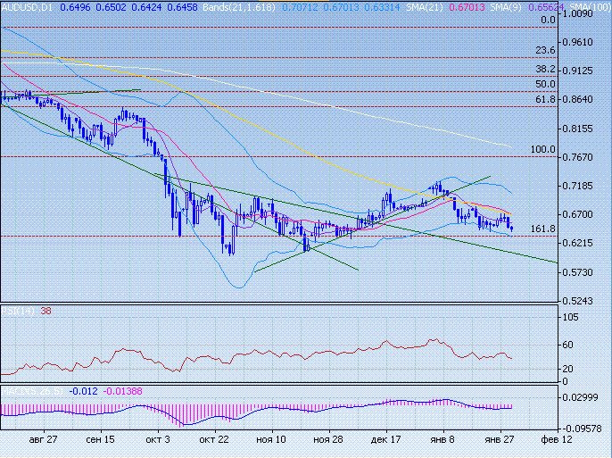 В текущую сессию ожидаем снижения аусси. Цель: 0,6380/0,6360
