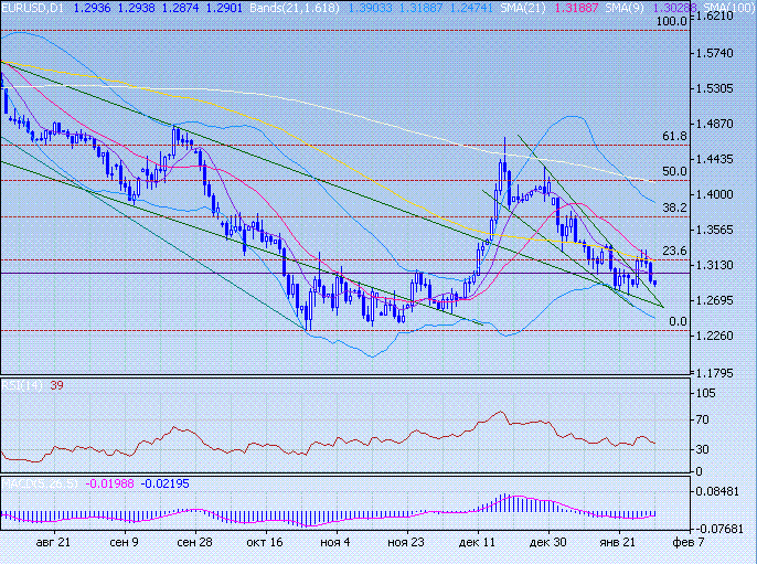 Евро потерял почву под ногами, снизился к 1,2890. На этих отметках евро получает значительную поддержку, прорыв вниз обозначит снижение евро к среднесрочной понижательной поддержке в районе 1,2650, что в текущей ситуации, когда перепроданы краткосрочные индикаторы, кажется маловероятным. Сопротивление евро при росте будет оказывать отметка 1,3040 и далее 23,6% Фибоначчи проходящая по 1,3190.