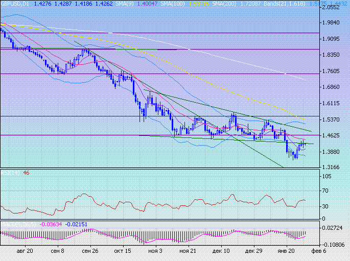 Стерлингу удалось удержать отметки на 1,4265, где проходит понижательное сопротивление, ранее выступающее сильной поддержкой. На фоне падения евро позиции стерлинга в текущей ситуации являются более сильными. Возможно, стерлингу удастся преодолеть сопротивление и вырасти под 1,4465, довольно оптимистичный сценарий. В случае неудачи стерлинг снизится к минимумам в районе 1,3600-1,3550. В текущую сессию вероятен любой сценарий развития, следите за новостями.