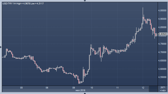 Турецкая лира в четверг опустилась до рекордного минимума в 4.9767 к доллару в связи с опасениями инвесторов об экономической и монетарной политике в стране после того, как вновь вступивший в должность президента Турции Тайип Эрдоган продолжил «радовать» инвесторов. Эрдоган разозлил инвесторов своим прогнозом о снижении процентной ставки. Эти слова даже заставили нижестоящих чиновников уверять инвесторов, что политика Центрального банка останется независимой. Дальнейший отскок лиры связан, скорее, с техническими факторами. Лира с начала 2018 года обрушилась на 22% к доллару на фоне тревог инвесторов о влиянии Эрдогана на денежно-кредитную политику и призывов турецкого лидера понизить процентные ставки.