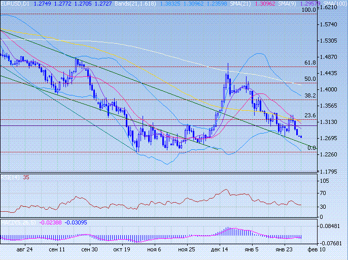 Долгосрочные сигналы дают неоднозначное толкование, темная свеча января не сумела поглотить свечу со светлым телом декабря, что указывает на неспособность доллара расти. С другой стороны, ключевой отметкой для евро в этом месяце станет 1,2300 и ее прорыв вниз значительно ослабит позиции евро. На краткосрочных графиках евро не сумел закрепиться по 1,2890, сейчас снижается и найдет поддержку со стороны среднесрочной понижательной поддержки в районе 1,2590. Прорыв этой отметки обозначит снижение евро к 1,2300. Краткосрочные индикаторы RSI сильно перепроданы, что должно привести к откат от нижних отметок в ближайшие сессии. В целом, нисходящий тренд для евро сохраняется.