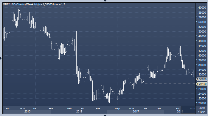 «Падение пары ниже психологической отметки $1.30 заставляет инвесторов присмотреться к следующей поддержке $1.2810 (коррекция 61.8% от роста 2016-2018 годов), которая может быть протестирована уже в ближайшие недели», - пишут аналитики банка. - «Ближайшее сопротивление - $1.3078 (100-недельная МА), однако фунт/доллару может оказаться непросто остаться в области $1.3000-$1.3050».