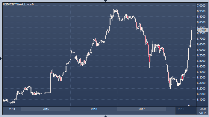 Об этом они написали в письме своим клиентам. Банк понизил прогноз на конец года до 6.95 юаня за доллар против прежнего прогноза 6.45. Недавнее интенсивное ослабление юаня указывает на то, что PBOC готовится к большему снижению валюты — до 7.1 к лету 2019 года, прогнозируют в Сингапуре. Дальнейшее падение индекса китайского юаня CFETS будет означать, что юань против корзины валют больше не поддерживается регулятором на «стабильном и разумном уровне». Примечание: индекс юаня от Bloomberg - CFETS — упал ниже 94 в пятницу, впервые с августа 2017 года; CNY падал на 0.49%; сейчас растет на 0.19% до 6.7670 против USD.