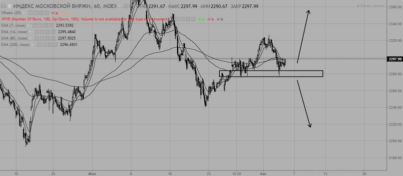 Индекс с лонговым глобальным приоритетом на 2200. Локально следим за уровнем 2280. Если он будет пробит, то не исключаем коррекцию к 2200.