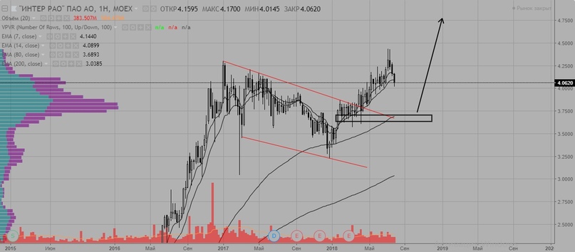 Интер РАО пробила лонговый локальный приоритет. Максимально безопасный вход будет по 3.75-3.8.