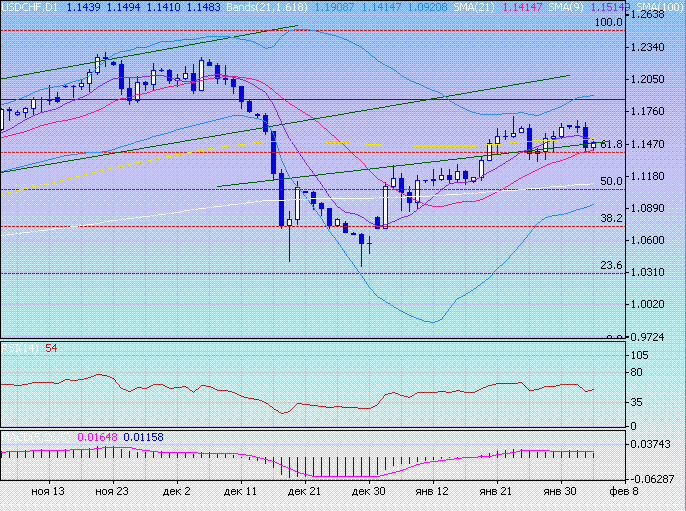 Свисси вырос к поддержкам на 1,1395, в настоящий момент откатывается от поддержек. Поддержки для доллара достаточно сильны, в случае же прорыва вниз 1,1350 формирование краткосрочной двойной вершины закончится, что позволит свисси расти. Такой сценарий кажется маловероятным. Сильное сопротивление проходит по 1,1650.