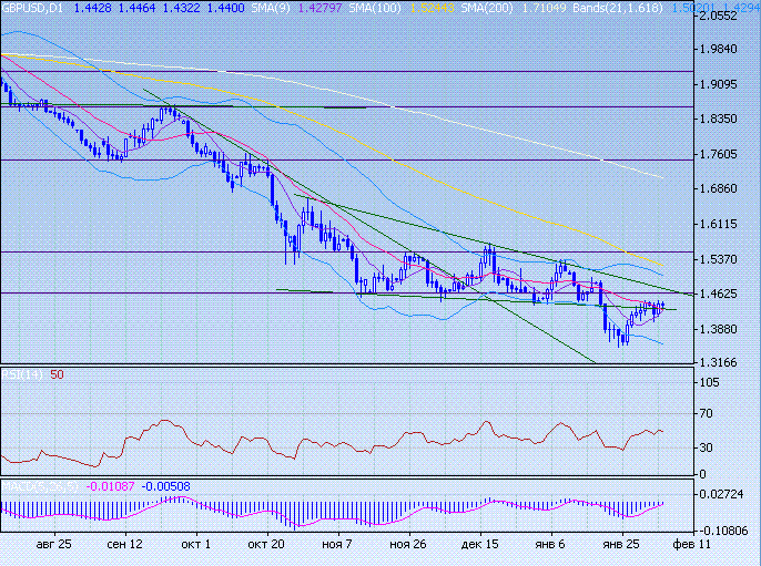 В текущую сессию ожидаем разнонаправленной торговли, тестирования сопротивлений. Цель: 1,4465, в случае прорыва 1,4650/1,4750
