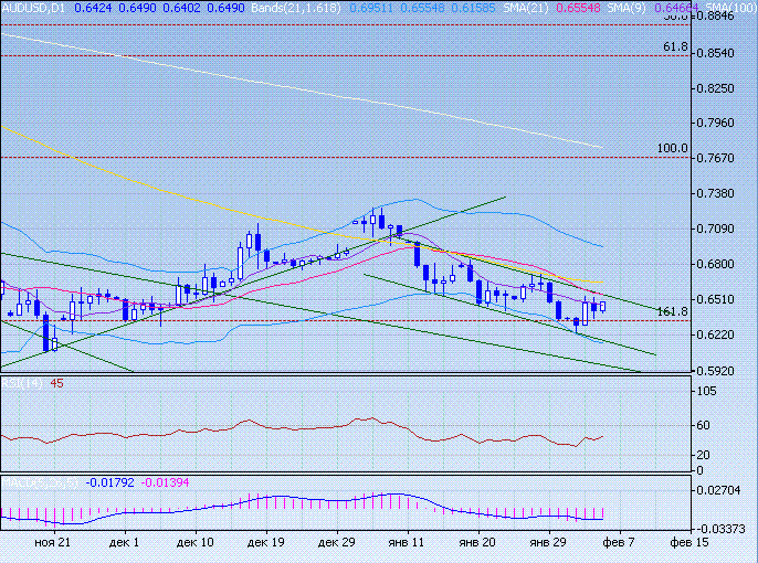 В текущую сессию ожидаем роста аусси под сопротивление канала, затем отката. Цель: 0,6560