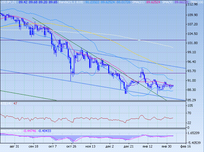 Спонтанная торговля без определенного направления в преддверии важных решений. Стерлинг несколько подрос в сессию среды, затем вернулся к первоначальным уровням. На дневном графике плотное сопротивление на 1,4480, вокруг которого и ведется торговля. В четверг ожидаем решения Банка Англии по ставкам, которое вероятно не станет неожиданным. Большее значение будут иметь комментарии официальных лиц, по итогам заседания. Пара торгуется по понижательной поддержке (1,4299) под горизонтальным сопротивлением (1,4650) и под среднесрочным понижательным сопротивлением. Наблюдаем пересечение 9 МА и 21 МА в сторону роста стерлинга. Прорыв 1,4465 приведет к расформированию предполагаемой промежуточной вершины и росту стерлинга под горизонтальное сопротивление. В противном случае стерлинг снизится.