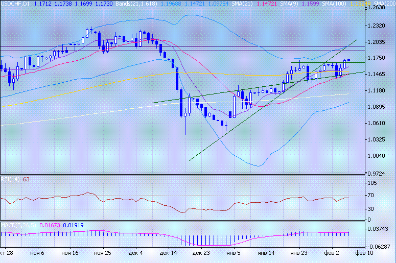 Свисси продолжил терять позиции, сопротивление на 1,1675 (перенесено с 1,1650) было без затруднений пройдено долларом. Следующей целевой отметкой становится 1,1875 на пути, к которой значимых сопротивлений нет. Поддержку будут оказывать уровни в районе 1,1675.
