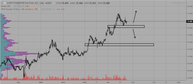 Сургут ап приоритет покупок. Наблюдаем, куда пойдет следующий импульс. В среднесрок можно смело брать от 32.8.