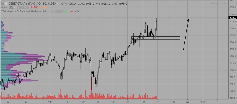 Северсталь приоритет покупок, отмена при пробитии вниз 1045.