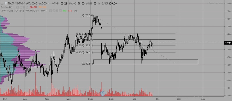 НЛМК на фоне остальных металлургов выглядит слабее всех. 164 - важный уровень приоритета продаж, пока его не пробили вверх, покупать опасно.