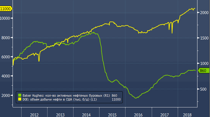 Отметим, что по данным Минэнерго США, объем добычи нефти в США три недели подряд остается в области рекордных значений и составляет 11 млн б/д.
