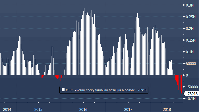 Согласно последним данным американской Комиссии по торговле товарными фьючерсами (CFTC), за неделю до 4 сентября спекулянты увеличили объем чистой короткой позиции во фьючерсах и опционах на золото на 9 465 контрактов до 78 918 контрактов (наиболее медвежья позиция за всю историю ведения статистики с июня 2006 года).