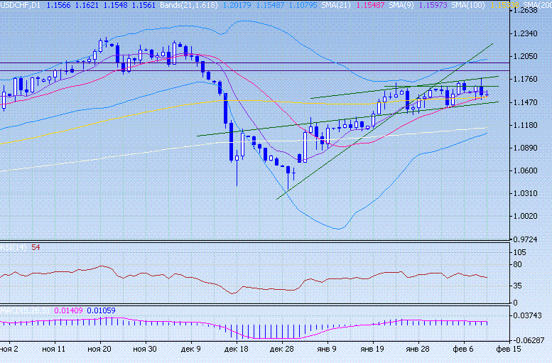 Доллар не сумел развить успех и вырваться из краткосрочного повышательного канала. Пара торгуется в середине канала в районе сосредоточения скользящих средних. Сильная поддержка для доллара проходит по 1,1450, промежуточное сопротивление расположено на 1,1675. В ближайшие сессии пара будет разнонаправлено торговаться в канале, определяясь с направлением дальнейшего движения.