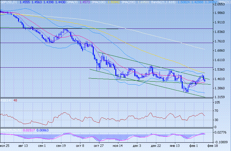 В текущую сессию ожидаем снижения стерлинга. Цель: 1,4200, в случае прорыва 1,3865
