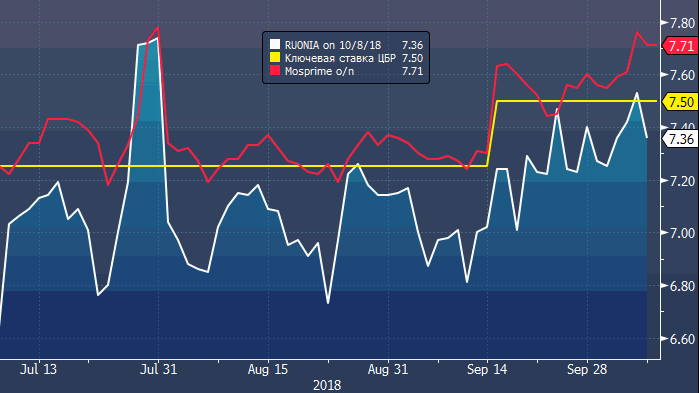 «Вследствие этого мы по-прежнему наблюдаем повышательное давление на ставки фондирования, в частности, через валютные инструменты. Вмененные ставки на рынке свопов протестировали локальные максимумы (1 мес. – 6.76%, 3 мес. – 6.37%)», - пишут аналитики Росбанка. - «В ближайшие недели обстановка будет во многом зависеть от исхода депозитного аукциона Банка России. Очевидно, у банков все меньше стимулов для наращивания предложения средств, однако, поступательное снижение лимитов и объемов размещения во второй половине сентября лишь сократило интерес к размещению средств в ЦБ, но не исчерпало его. При этом, в конце октября предстоят крупные налоговые выплаты, и это само по себе обещает серьезный стресс для рублевого фондирования».