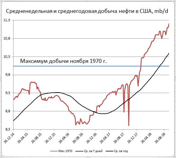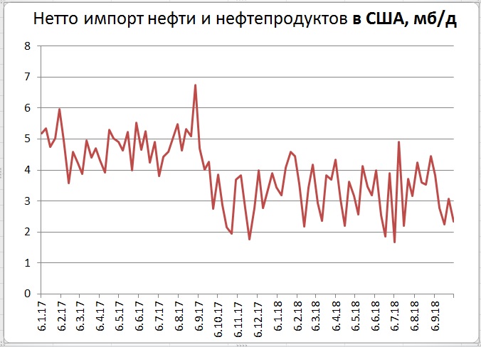 Как обычно, большой интригой стали данные по добыче нефти и в этот раз в связи с ожиданиями будущего снижения добычи по воле урагана Майкл. Но за неделю, закончившуюся 5 октября добыча еще подросла на 0,1 Мб/д до нового рекорда в 11,2 мб/д. Так что снижаться добыча будет от высокой базы.