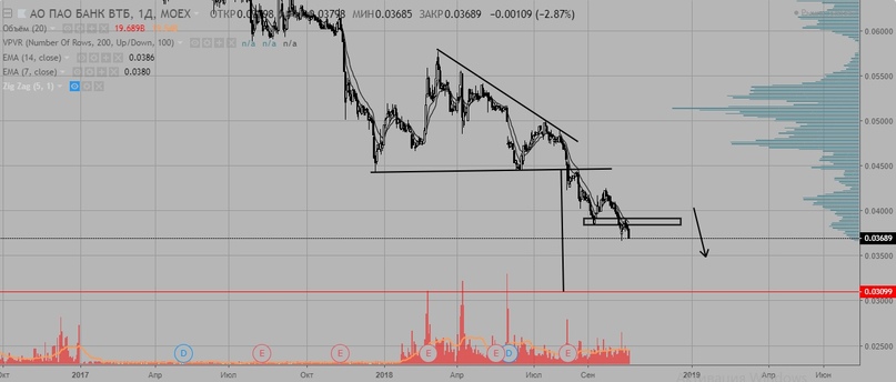 ВТБ продолжает ралли к старой цели. Больше половины пути уже пройдено. Актуальный уровень для шорта - 0,385.