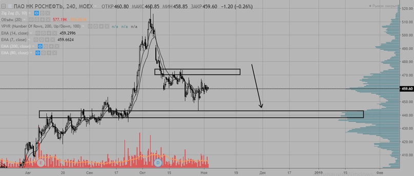 Роснефть тоже без изменений, приоритет шорт.