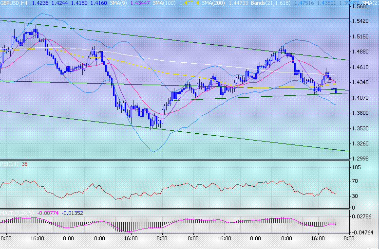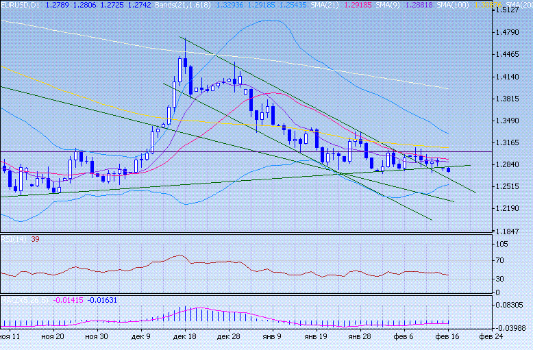 На слухах о возможных снижениях рейтингов стран еврозоны евро не удержался по среднесрочной повышательной поддержке на 1,2805. Поддержка теперь будет выступать сопротивлением. Вероятно снижение евро к поддержке – сопротивлению понижательного канала в районе 1,2640. Тем не менее, сильного падения евро не происходит. Сопротивлениями будут выступать 9 МА и 21 МА.