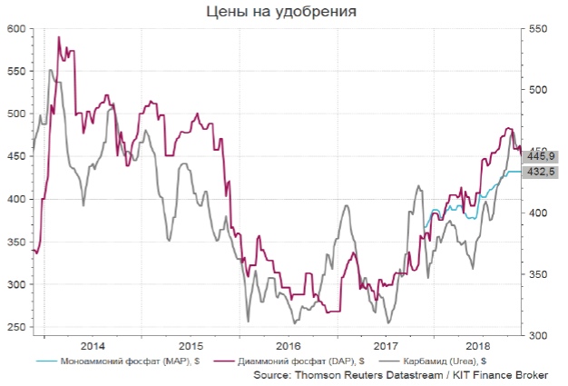 Основным фактором роста выручки стал высокий уровень продаж азотных удобрений (+48%). Показатель EBITDA увеличился на 72% – до 23,4 млрд. руб., рентабельность по EBITDA достигла почти трёхлетнего максимума – 37%. Чистая прибыль, скорректированная на неденежные валютные статьи, за III кв. 2018 г. выросла на 123,2% по сравнению с аналогичным периодом 2017 г. – до 12,9 млрд. руб.