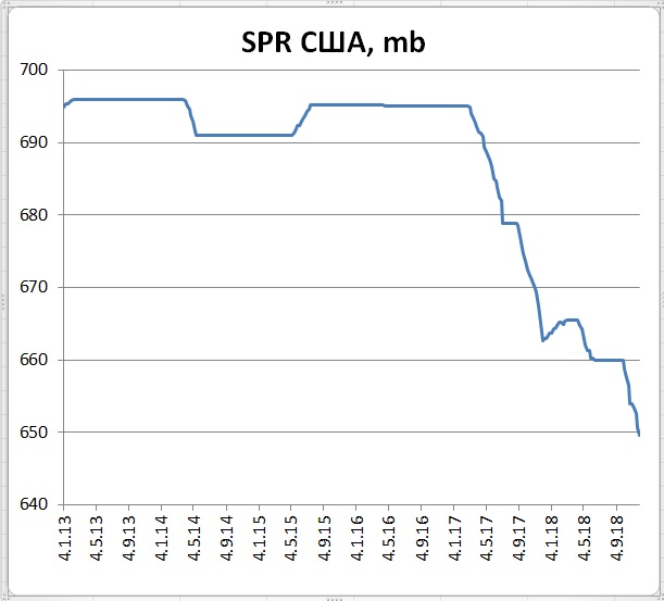 Energy Information Administration (EIA) United States Department of Energy (DOE) сообщило, что за неделю, закончившуюся 30 ноября 2018 года, коммерческие запасы нефти в США снизились на 7,3 Мб (до 443,2 с 450,5 Мб неделей ранее). Напомним, что Американский институт нефти два дня назад представил свои оценки динамики запасов. Согласно оценкам API запасы сырой нефти должны были вырасти на 5,36 Мб. (Запасы в Кушинге: +1,44 Мб; запасы бензина: +3,61 Мб; запасы дистиллятов: +4,32 Мб). Таким образом, по их оценкам, прошедшая неделя должна стать уже одиннадцатой неделей роста запасов при том, что в прошлом году в тот же период времени запасы стабильно снижались. А вот согласно прогнозу экспертов, опрошенных агентством Bloomberg, запасы нефти за прошедшую неделю должны были снизиться на 1,961 Мб (запасы бензина: +0,912 Мб; запасы дистиллятов: +0,962 Мб)