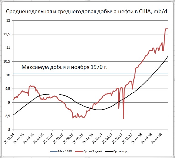 Как обычно, большой интригой стали данные по добыче нефти. Но и на этот раз за неделю, закончившуюся 30 ноября, добыча осталась на прежнем рекордном уровне в 11,7 Мб/д (изменения – 0). США по этому параметру находятся впереди своих конкурентов – России и СА (и, пофантазируем перед заседанием ОПЕК+, сохранением добычи показывают им «образец правильной» динамики добычи).