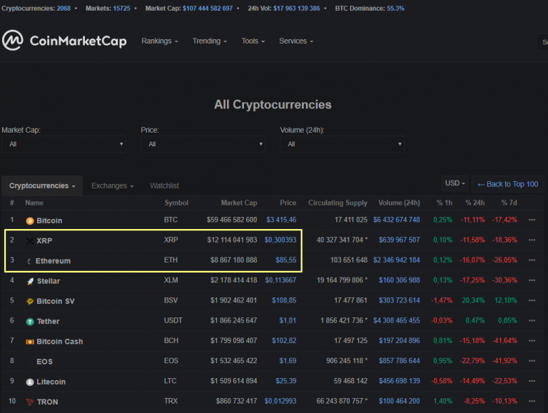 Отдельно стоит отметить, что уверенно идущий против рынка Bitcoin SV оказался уже на пятой ступеньке рейтинга CoinMarketCap.