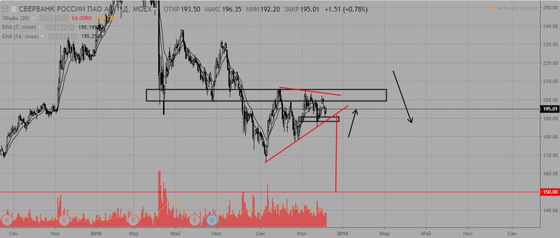 Сбербанк пробил локальный уровень продавца, сменив приоритет на покупки. Актуальный уровень для покупок — 188.