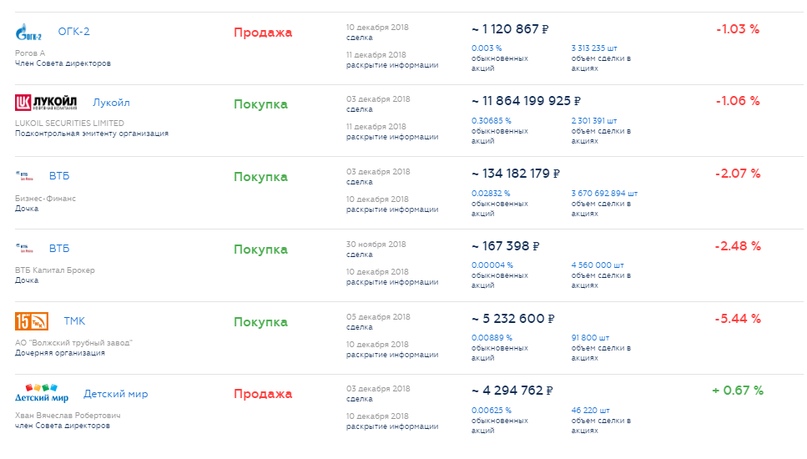 Инсайдеры на неделе: