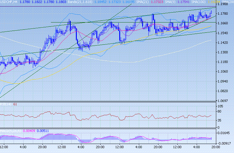 Доллар продолжил наступление в этой паре. Сопротивление при росте будут оказывать отметки на 1,1850/75. Прорыв сопротивлений ускорит рост доллара под 1,1975 и далее к 1,2050. Краткосрочная повышательная поддержка проходит по 1,1725, промежуточная горизонтальная поддержка по 1,1675. Поддержку доллару будут оказывать также 9 МА и 21 МА.
