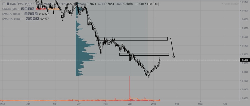 Русгидро без изменений, приоритет продаж актуален. Наблюдаем за тем, как цена поведет себя на уровне 0,52.