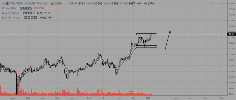 ГМК без изменений, приоритет покупок актуален. Цена подошла к уровню сопротивления, наблюдаем за дальнейшей динамикой.