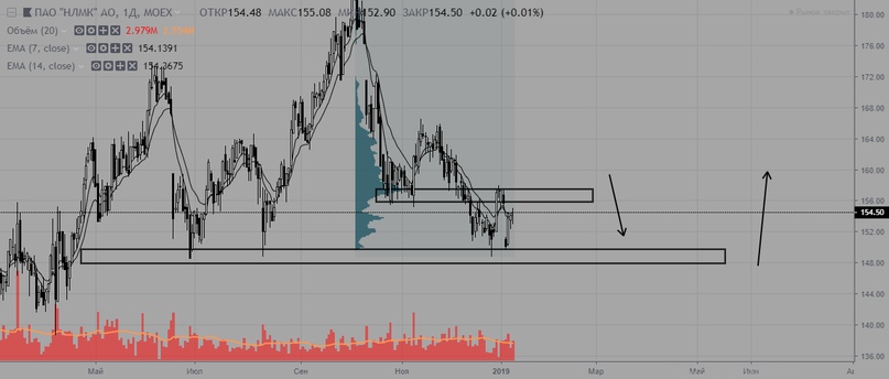 НЛМК сформировал новый уровень продавца на 158. Пока цена ниже — стоит воздержаться от покупок.