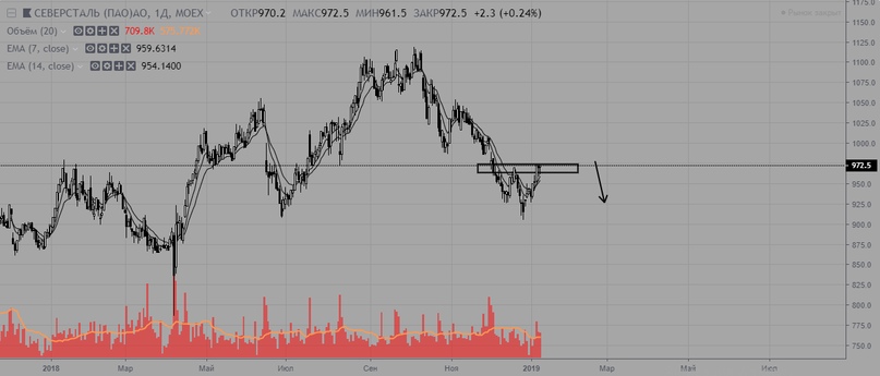Северсталь глобально без изменений, долгосрочный тренд все еще нисходящий.