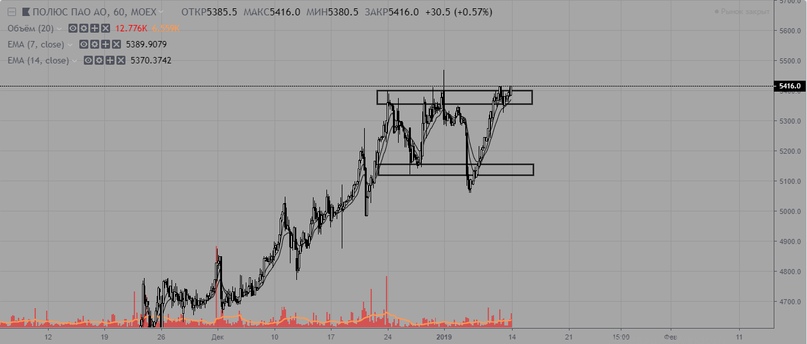 Полюс ложно пробил поддержку и вернулся в боковик. Если цена выйдет из боковика вверх, то среднесрочный растущий тренд продолжится.