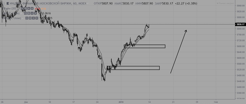 Локально мы видим разворот тренда в лонг. Ближайший уровень интереса покупателя — 5675, пока цена выше — отдаем предпочтение покупкам.