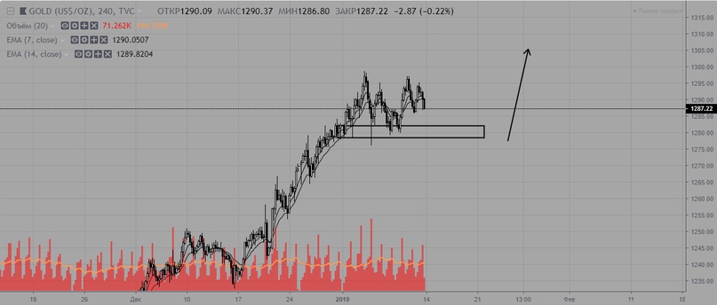 Золото завершило волну роста и перешло в боковик. Актуальный уровень поддержки — 1280, пока цена выше стоит отдавать предпочтение покупкам.
