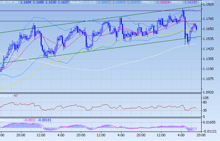 Свисси отскочил от нижних отметок, доллару удалось вырасти под сопротивление на 1,1735, после чего доллар снизился. Пара торгуется в середине полосы Боллинжера. Поддержка проходит по 1,1575. Ожидаем прорыва поддержки вниз в ближайшие сессии.