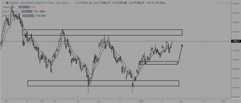 Индекс нефтегазового сектора без изменений. Наблюдаем за динамикой цены вблизи уровня сопротивления на 7300.