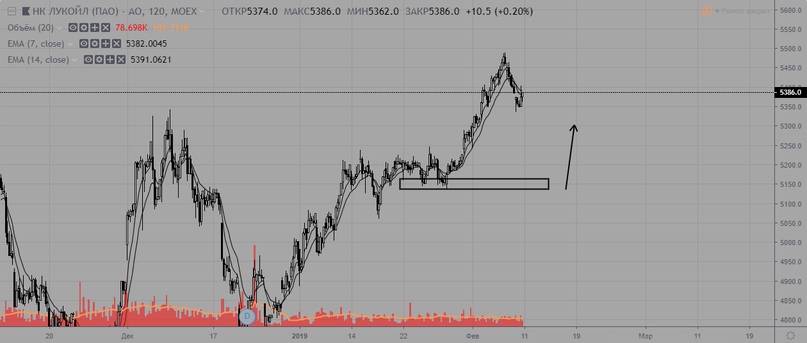 Лукойл без изменений, отдаем предпочтение покупкам, пока цена выше 5140.