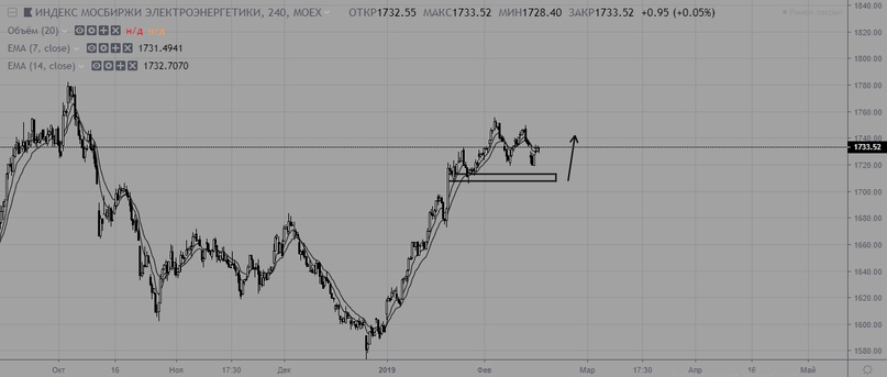 Индекс электроэнергетики без существенных изменений. Индекс перешел в боковик. Актуален восходящий тренд с поддержкой на уровне 1710.