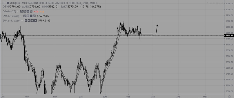 Индекс потребительского сектора без изменений. Пока цена выше уровня 5770 — отдаем предпочтение покупкам.