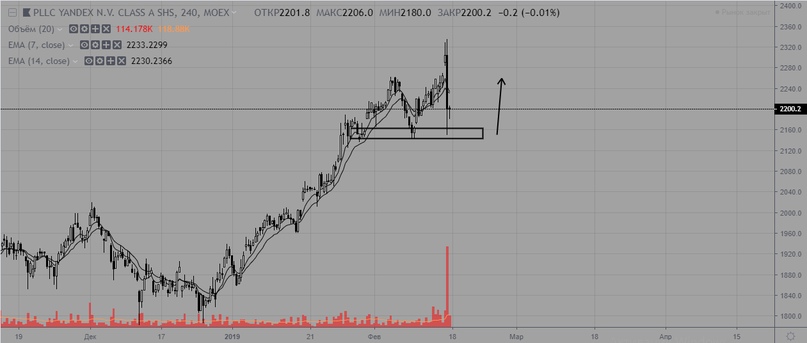 Яндекс без существенных изменений. Актуальная поддержка на уровне 2140 устояла, однако, учитывая агрессию и объем продаж есть риск пробоя поддержки и падения ниже.