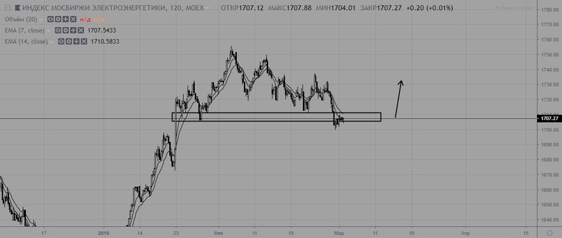 Индекс электроэнергетики закрылся упором в уровень поддержки. Возобновления покупок от уровня нет, так что высока вероятность продолжения коррекции.