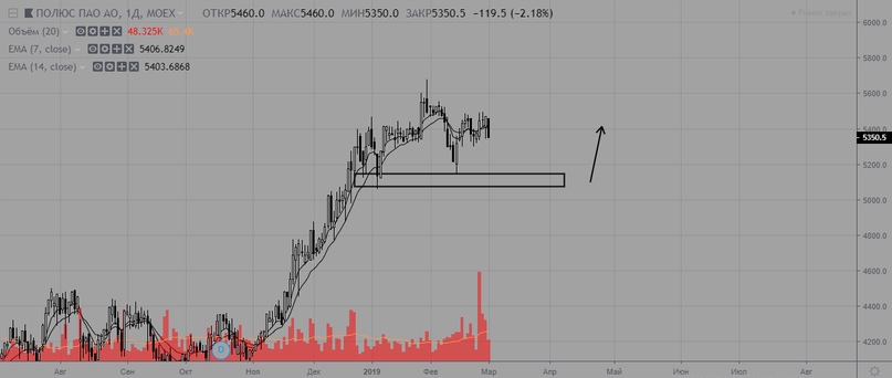 Полюс без изменений, среднесрочный тренд восходящий, поддержка на уровне 5100.